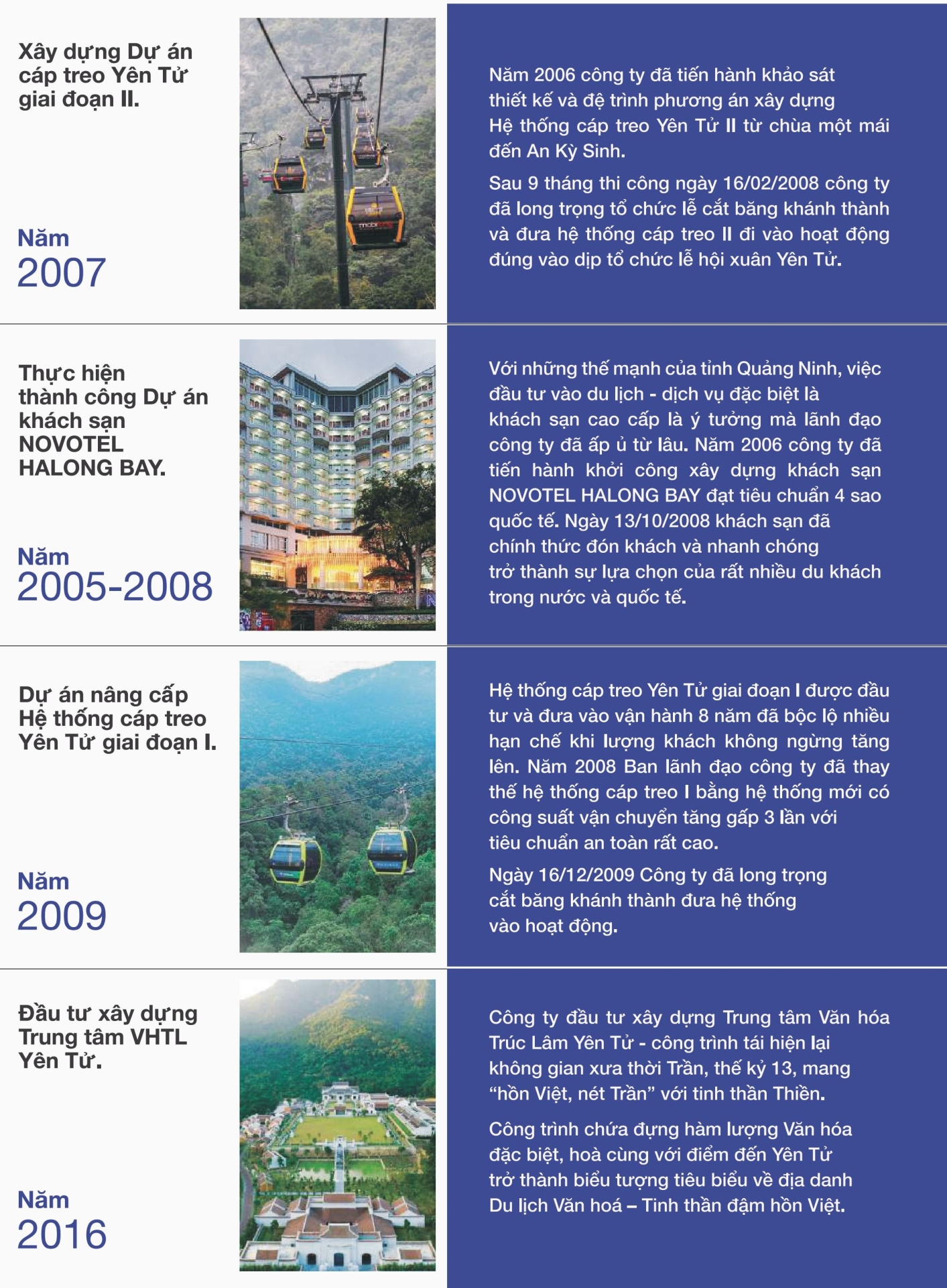 Với những thành công ngoài mong đợi của Dự án cáp treo Yên Tử giai đoạn I. Năm 2006 công ty đã tiến hành khảo sát thiết kế và đệ trình phương án xây dựng Hệ thống cáp treo Yên Tử II từ chùa một mái đến An Kỳ Sinh.